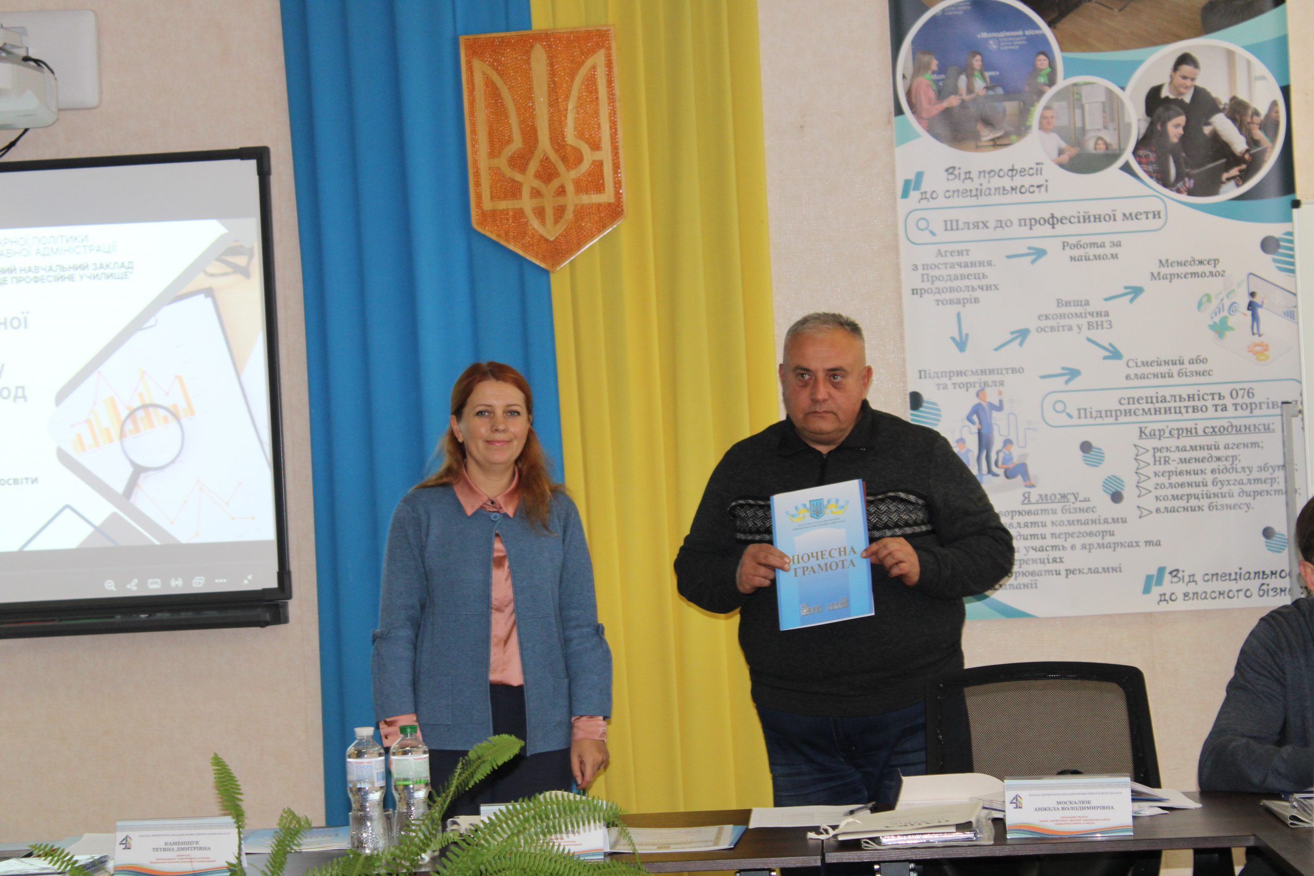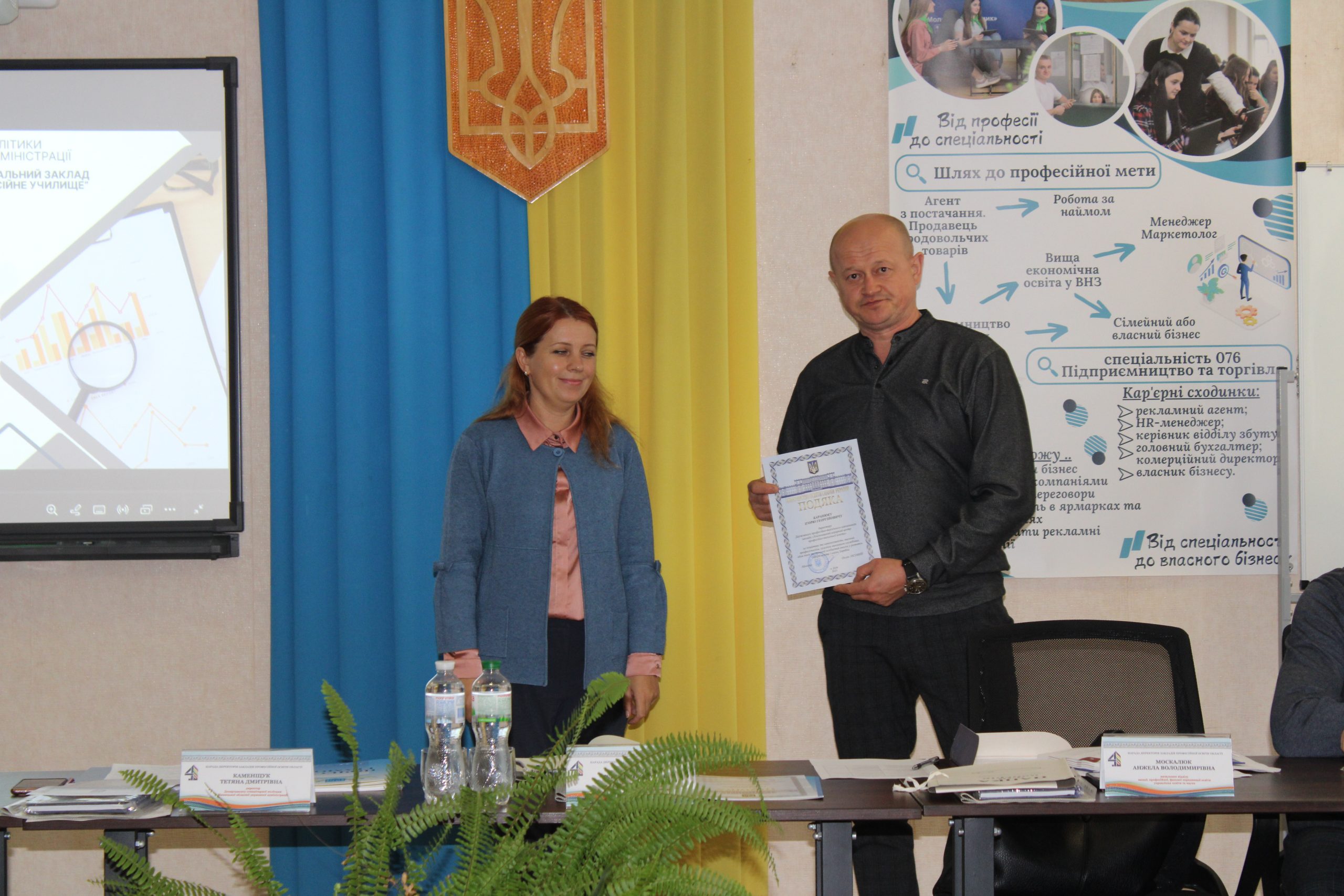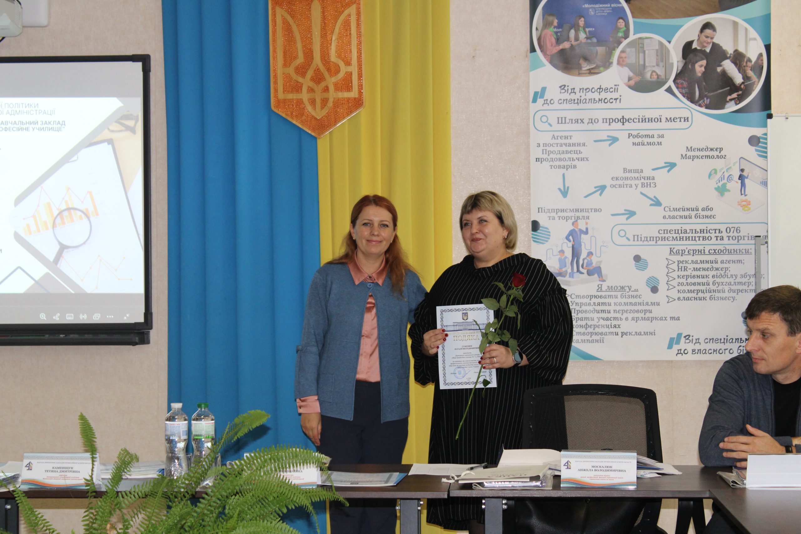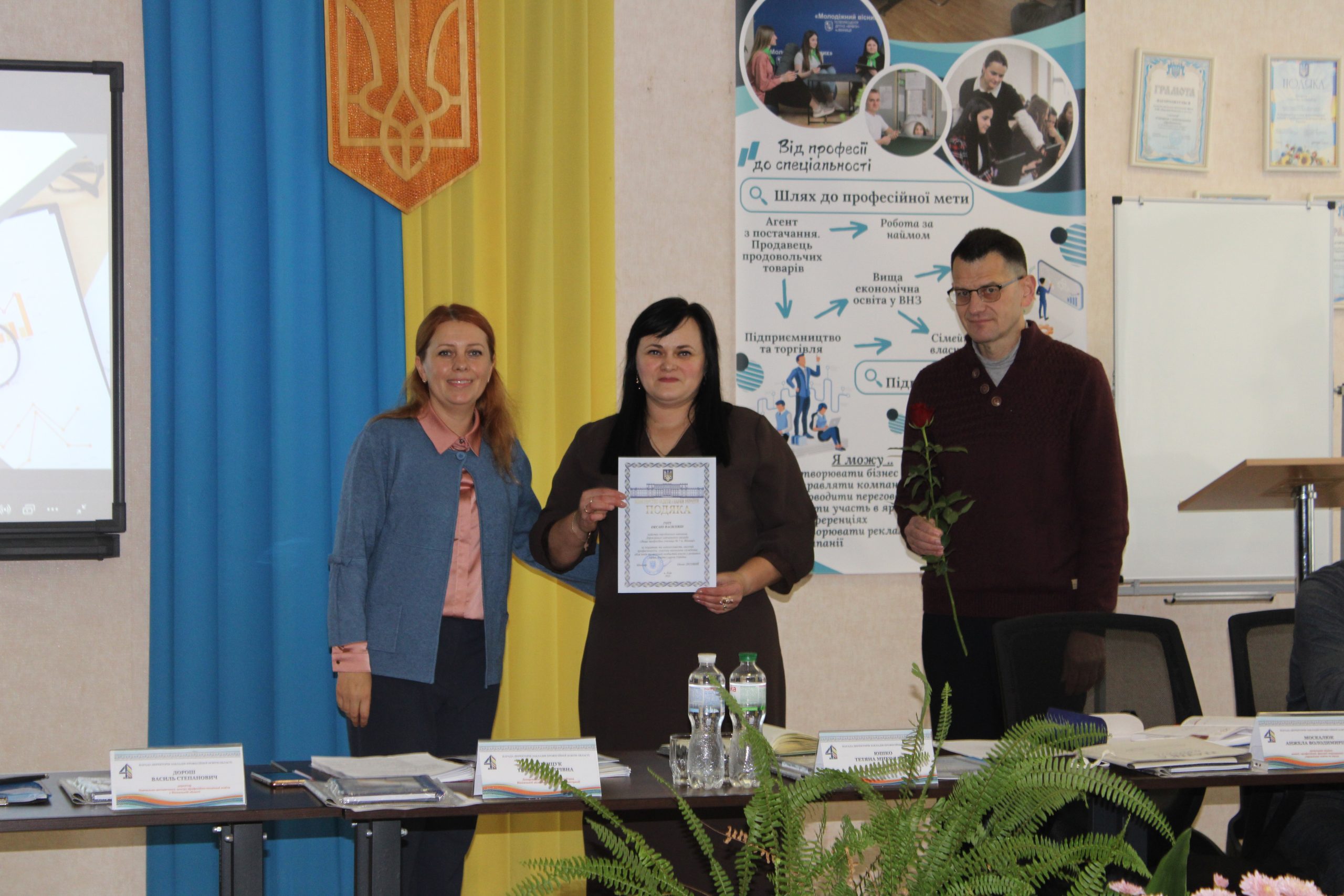 Тетяна Каменщук - директор Департаменту, вручила освітянам з професійної освіти подяки Міністерство освіти і науки України та почесні грамоти Департаменту гуманітарної політики Вінницької ОДА.